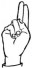 На ћирилици написано ЉУБИСЛАВ СКЛОПИЋ састоји се из 15 слова [?]. Исписано ћириличном једноручном азбуком за глувонеме: